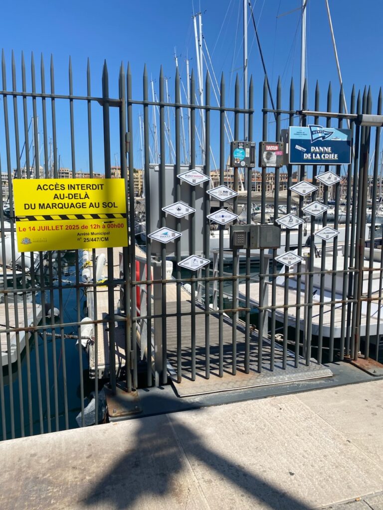 At the angle of the Mucem museum, seaside, just after the bridge of Saint Jean Fort